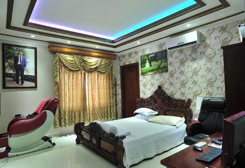 Phòng làm việc của chồng Trang Nhung nổi bật với tông màu vàng sang trọng. Đây là nơi diễn ra những buổi gặp gỡ đối tác, hoặc họp hành với các nhân viên trong công ty.