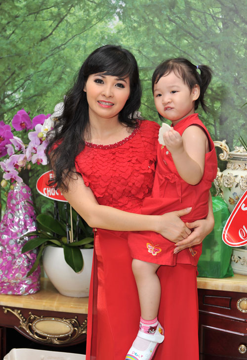 Trang Nhung và con gái út trong ngày mừng tân gia.