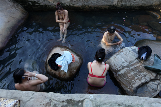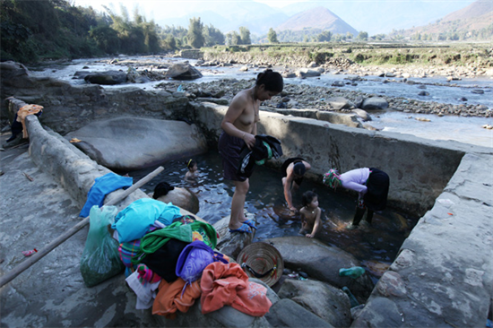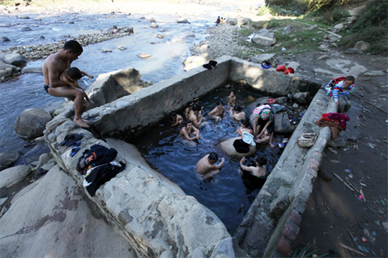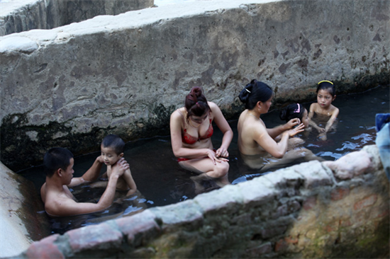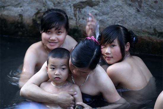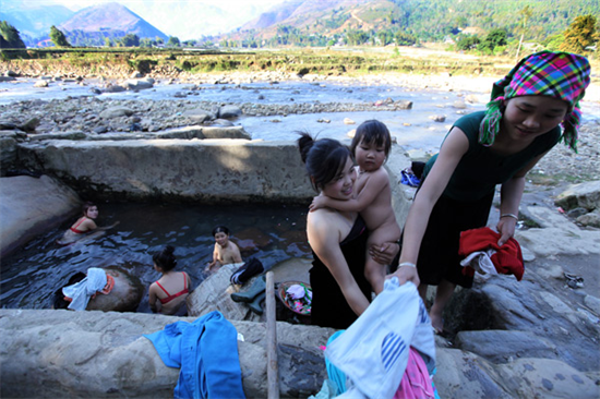 Tắm nước nóng còn là cách thư giãn của người dân Tú Lệ sau một ngày làm việc mệt mỏi đã tồn tại từ nhiều đời nay.
