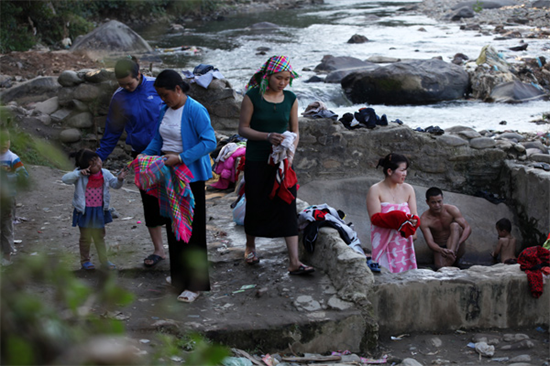 Từ 4 giờ chiều người dân Tú Lệ lục tục kéo nhau ra suối Nặm Lung tắm nước nóng.