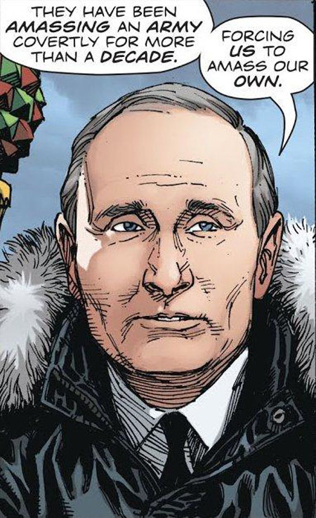 Đáng chú ý, bộ truyện này có sự xuất hiện của Tổng thống Nga Vladimir Putin trong hình tượng nhân vật phản diện và đầy hiếu chiến.