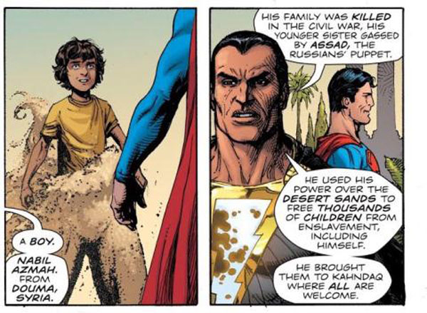 Đứa trẻ được siêu anh hùng cứu sống đến từ Douma, là nạn nhân của một vụ tấn công hóa học được thực hiện bởi chính quyền Assad xuất hiện trong bộ truyện tranh.