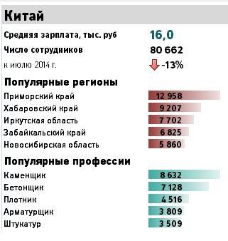 Số liệu về lao động Trung quốc ở Nga cho đến tháng 6 năm 2014