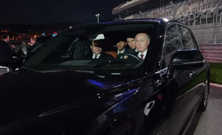 Nhà lãnh đạo Nga đã lái chiếc limousine bọc thép Aurus Senat cùng Tổng thống Ai Cập Abdel Fattah el-Sisi tại trường đua Sochi vào tháng 10 năm 2018. © Sputnik / Alexey Druzhinin