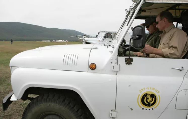 Hình ảnh ông Putin lái chiếc UAZ vào ngày 13 tháng 8 năm 2007 tại Tuva. Hoàng tử Albert II của Monaco ngồi ở ghế phụ. © Sputnik / Dmitry Astakhov