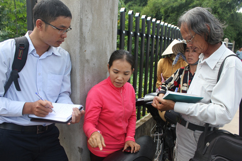 Chị Tâm (áo đỏ) đang kể lại giây phút sinh tử với kẻ cuồng sát.