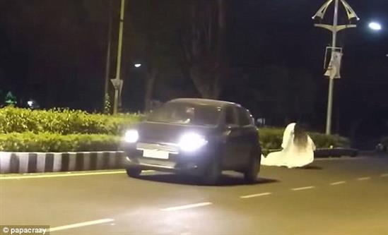 Tài xế ô tô nhấn ga, chạy thẳng lên và tông vào người "con ma".