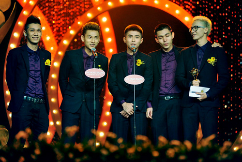 365 - nhóm nhạc 5 chàng trai do chính Ngô Thanh Vân quản lý và dẫn dắt cũng đã có những bước tiến dài trong năm qua. Với MV ấn tượng Ai đó đêm nay và nhiều ca khúc hit trước đó, gà cưng của nữ diễn viên đã được vinh danh ở hạng mục Nhóm nhạc được yêu thích nhất, vượt qua hai đối thủ lớn là V.Music và MTV.