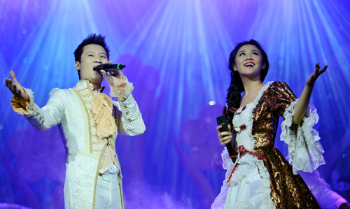 Hoàng Bách và Văn Mai Hương trình bày ca khúc A time for us.