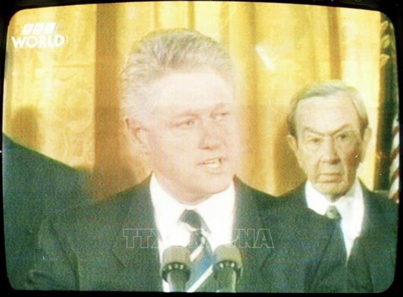 Đêm 11/7/1995 (giờ Mỹ), Tổng thống Mỹ Bill Clinton đã chính thức tuyên bố bình thường hóa quan hệ ngoại giao với Việt Nam. Ảnh tư liệu: TTXVN