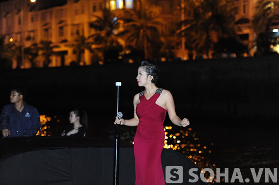 Diva Mỹ Linh biểu diễn rất sung trên mũi tàu
