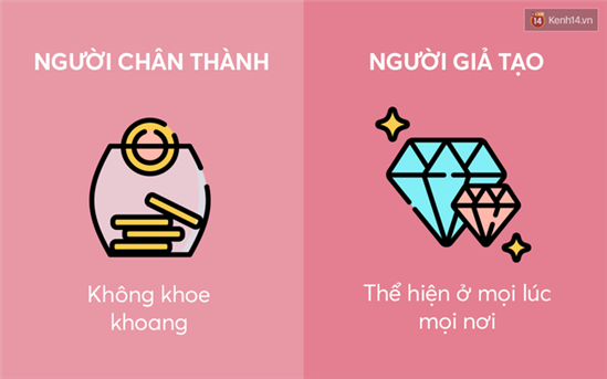 Người chân thành luôn đề cao sự chân thành trong các mối quan hệ. Người giả tạo thì tìm mọi cách, làm mọi việc để khiến người khác thích mình.