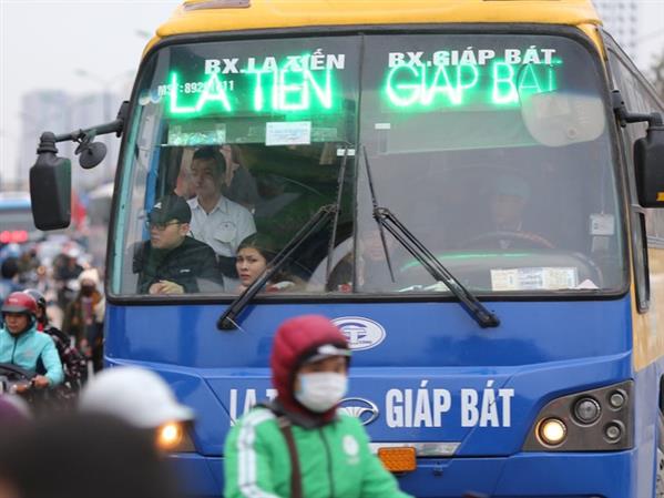 Tại Bến xe khách phía Nam, ngay từ trưa 1/1 đã có nhiều người từ khắp nơi về Hà Nội nên đến cuối ngày vẫn không xảy ra quá tải.