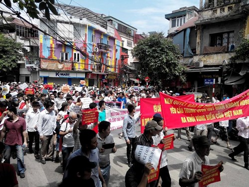 Vừa đi, đoàn người vừa hô vang đả đảo Trung Quốc và yêu cầu Trung Quốc rút ngay giàn khoan khỏi vùng biển của Việt Nam.