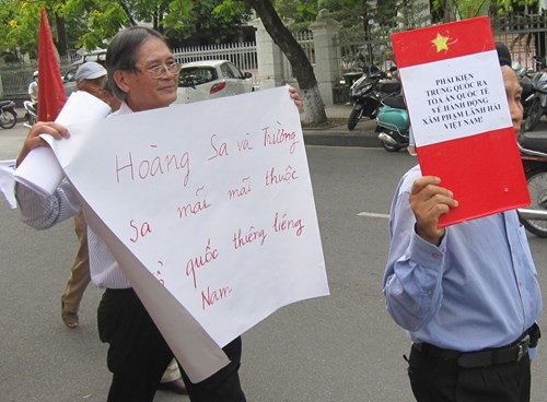 Và có cả những cụ già cũng xuống đường biểu lộ thái độ phản đối mạnh mẽ với những hành động ngang ngược, phi pháp của Trung Quốc.