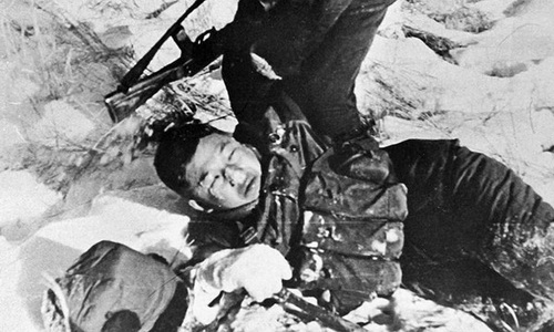Lính TQ bị thương được đồng đội kéo trên chiến trường Xô-Trung 1969