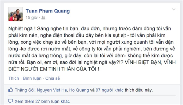 Trên trang cá nhân Facebook của Đặng Thành Chung hàng trăm bạn bè đã bày tỏ nỗi buồn bằng những dòng đầy tiếc nuối.