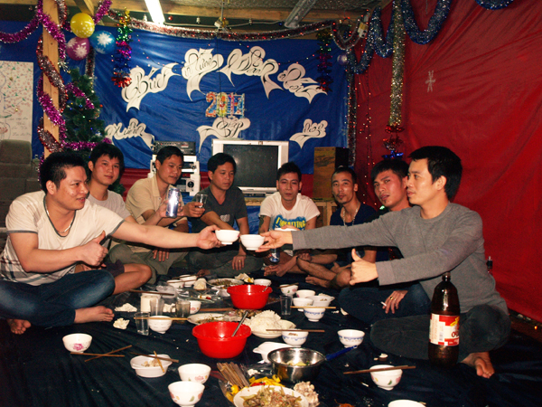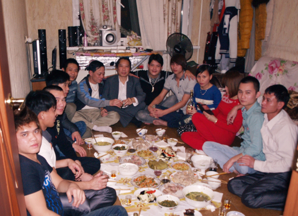 Ở một khu xưởng may phía Bắc ngoại ô Matxcơva, Hội Dệt May Việt Nam tại Nga và các chủ xưởng đã mời Cha xứ đến tổ chức Lễ Giáng sinh cho công nhân. Ở đây có hàng trăm thợ may gốc Thiên Chúa giáo, họ tổ chức thi hát Thánh ca, Giải Nhất dành cho tập thể lên tới Hàng ngàn Mỹ kim. Đến thăm khu xưởng may khác ở ngoại ô phía Nam, tôi thấy ở đây công nhân được nghỉ đón Tết từ ngày 26. Họ bảo cả năm làm cật lực, xin chủ cho nghỉ một tuần để dưỡng sức. Được cái mấy ông chủ ở đây hiểu tâm lý và biết thương công nhân, cho đón tết hoành tráng, có trang trí phông màn, dán câu đối Tết, đèn màu rực rỡ. Họ tổ chức tiệc không kém phần thịnh soạn, uống rượu, thi hát karaoke có giải thưởng mấy ngày liền. Có xưởng còn tặng cho anh em món quà Tết thiết thực: mỗi người một chiếc Card điện thoại để gọi về Việt Nam. Trong buổi tiệc tất niên, lãnh đạo công ty, chủ xưởng mở đầu bằng những lời chúc mừng tốt đẹp tới anh chị em công nhân.  Anh chị em công nhân hát hò, đón Giao thừa rồi nhảy múa tới 3-4 giờ sáng.