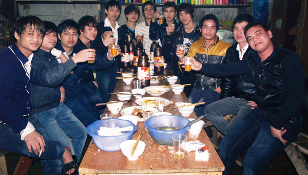 Sau hát hò nhảy múa, cánh thanh niên vẫn còn dư sức "nhậu" tiếp, nhưng chủ yếu là với bia và nước ngọt