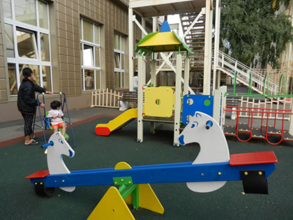 Chưa kể ở khu vực ngoài trời phía sau khách sạn Mêkông còn có một sân chơi dành cho các cháu với mặt bằng khoảng 100 mét vuông. Chi phí cho các trang thiết bị để tạo nên sân chơi này cũng không phải là nhỏ! Từ rải thảm, gắn cầu bập bênh, xích đu, đặt khung nhà có cầu trượt…màu sắc trang nhã, sản phẩm do Nga chế tạo nên tính độ bền và an toàn cao.