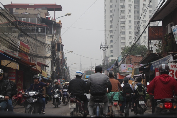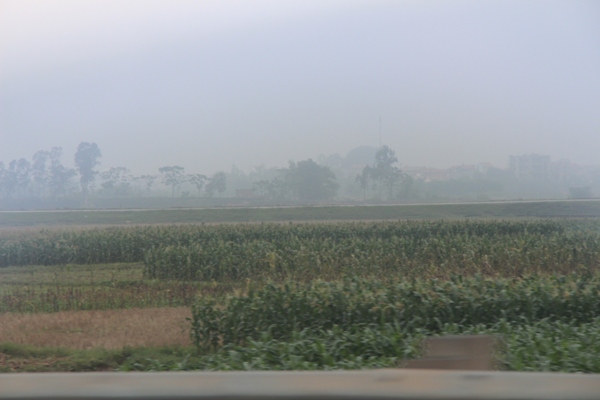 Bao cảnh vật sống động lần lượt hiện ra trước ống kính “Canon” dài ngoẵng của tôi. Tôi cứ bấm nhoay nhoáy như liên thanh, đèn flash lóe sáng nổ đôm đốp, bởi sương mù, tầm nhìn xa trên 1 km, radio của đài phát thanh Hà Nội từ trong xe cho chúng tôi hay như vậy. Quả thực là sương mù, trong khi thời tiết thì ẩm ướt đến là khó chịu, khác hẳn trời Nga lúc nào cũng khô ráo. Nhiệt độ 24 độ C (trong khi ở Mátxcơva hôm qua khi tôi đi đã là âm 2, âm 3 độ C, tuyết rơi dày) nóng hơn tôi tưởng khi còn ở bên Nga. Chiếc áo khoác ấm, khăn len quàng kín cổ, mũ, găng tay da…phải cho vào túi dết hết, may mà chị tôi alô cho biết trước nên áo dạ, mũ lông, đôi giày da cao cổ…không mang về!