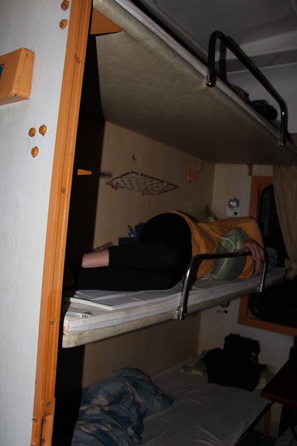 Trời ơi, đường sắt Việt Nam mấy chục năm nay (từ thời Pháp thuộc cả trăm năm) vẫn chỉ là rộng có…1 mét? Trong khi ở các nước tiên tiến tối thiểu là 1.40 mét! Đi trên những con tàu của họ mà cảm giác như đi trong nhà. Tiếng động cũng giảm. Còn tàu của ta ư? Biết nói thế nào nhỉ? Đã chòng chành lại ầm ầm nhức đầu kinh khủng. Chưa nói tới chuyện hành khách ngổn ngang nằm ngồi, bất cứ góc nào có thể. Một chi tiết hơi kì kì đập vào mắt tôi: Anh nhân viên phụ trách toa nằm còng queo trên chiếc nilon trải ngay dọc lối đi? Sao thế. Hỏi ra mới biết, chiếc giường tiêu chuẩn của anh đã…“nhường”(?) cho một vị khách với “giá thỏa thuận”!!! Chưa hết, ngay bên cửa ra vào toa và cả sát lối vào nhà vệ sinh cũng có một vài vị đang nằm choèo queo?! Và cái cảm giác vô cùng khó chịu khi chúng tôi phải chấp nhận nằm ở toa có đến…6 giường nằm! Điều mà bên Nga chưa từng có (thông thường chỉ có 4 giường). Bởi người ở dưới luôn phải gò mình, đúng là chỉ có nằm chứ không được phép ngồi? Bởi nếu anh ngồi thì đầu đụng trần giường trên và kịch trần toa. Thật là khó chịu, ai cũng kêu ca nhưng lực bất tòng tâm!
