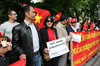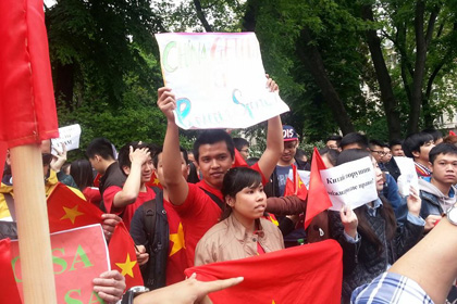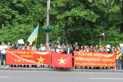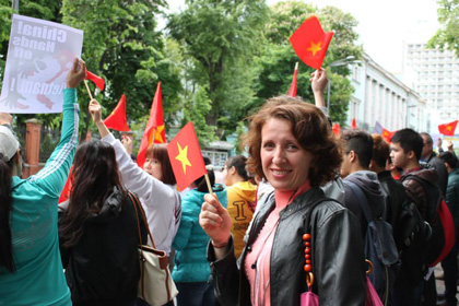 Một người trong số họ, chị Elena, giáo viên tiếng Việt Đại học Kiev nói: “Tôi là bạn của Việt Nam, tôi không thể làm ngơ trước sự xâm lấn của Trung Quốc đối với biển đảo Việt Nam!”.