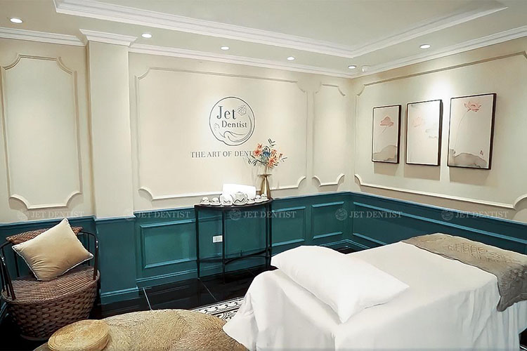 Đây chính là điều khác biệt của Jet Dentist dành riêng cho các khách hàng cần theo dõi sau điều trị hoặc cần thời gian phục hồi giữa các bước trong quy trình hoàn thiện nụ cười. Hệ thống phòng nghỉ được thiết kế sang trọng với đầy đủ các tiện ích tạo cảm giác thoải mái cho mọi khách hàng. Tại đây khách hàng có thể tận hưởng một bữa ăn được chuẩn bị chu đáo, với menu được chuẩn bị bởi các đầu bếp cao cấp cho phù hợp với điều kiện sức khỏe răng miệng hiện tại của khách hàng.