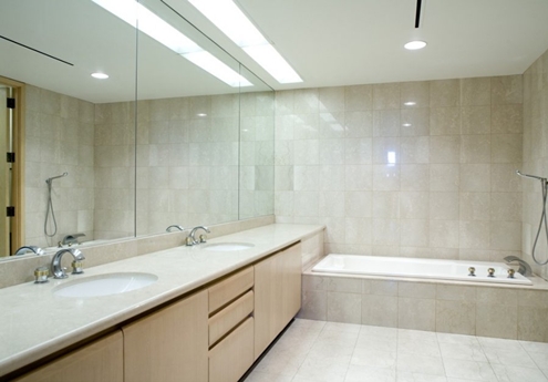 Căn hộ nằm trong chung cư cao cấp Blair House có từ năm 1989. Tuy nhiên, phòng tắm có vẻ chỉ mới được xây dựng.