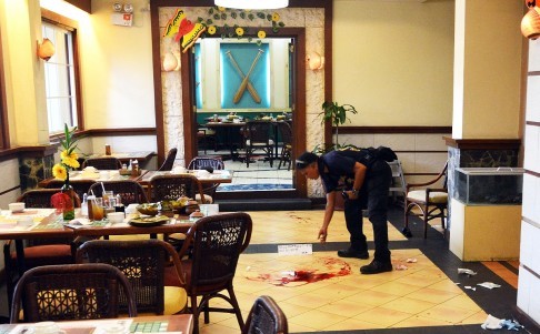 Nhân viên thu ngân của nhà hàng, cô Remedios Rivalde (27 tuổi) là nhân chứng đã nghe thấy tiếng súng. "Tôi nấp ngay dưới bàn tính tiền, bịt tai lại. Nhiều tiếng nổ khác tiếp tục vang lên", cô nói với báo South China Morning Post.