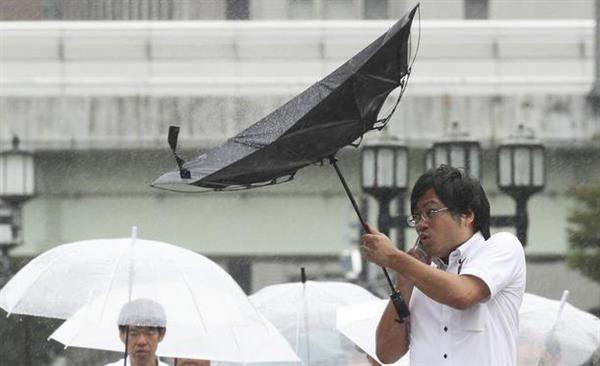 Người dân Tokyo chật vật trong gió mạnh. Tuy Tokyo không nằm trong tâm bão nhưng dự đoán đến ngày 5/9 thủ đô Nhật Bản sẽ hứng chịu mưa to và gió mạnh. Ảnh: EPA