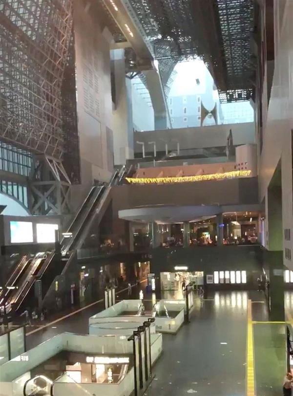 Mái nhà ga tàu ở Kyoto bị vỡ do gió mạnh. Ảnh: Reuters
