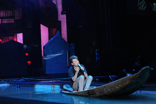 Đàm Vĩnh Hưng "bơi xuồng" trên sông ngay giữa sân khấu
