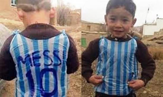 Ở một câu chuyện khác, cậu bé năm tuổi Murtaza sống ở đất nước Afghanistan, nơi mà những cuộc nội chiến, nhóm khủng bố xung đột, bom đạn có thể bất cứ dội xuống bất cứ lúc nào. Tuy nhiên, bom đạn vẫn không thể ngăn tình yêu của cậu bé Murtaza đối với bóng đá, em thần tượng Messi. Vì quá khó khăn, người anh trai Murtaza đã dùng ni lon làm cho cậu em mình một chiếc áo thần tượng Messi. Murtaza rất thích thú khi khoác trên người chiếc áo “rác” nhưng em vẫn hồn nhiên chơi bóng và em ước một ngày được gặp thần tượng của mình là Messi. Tình cờ bức ảnh Murtaza được đăng tải trên các phương tiện truyền thông nhanh chóng đốn tim hàng triệu người trên thế giới.