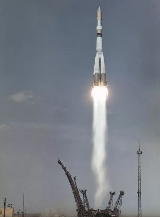 Ngày 12 tháng 10 năm 1964: Phóng tàu Voskhod 1 (Bình Minh 1), tàu vũ trụ nhiều chỗ ngồi đầu tiên trên thế giới với phi hành đoàn gồm ba người. © Sputnik