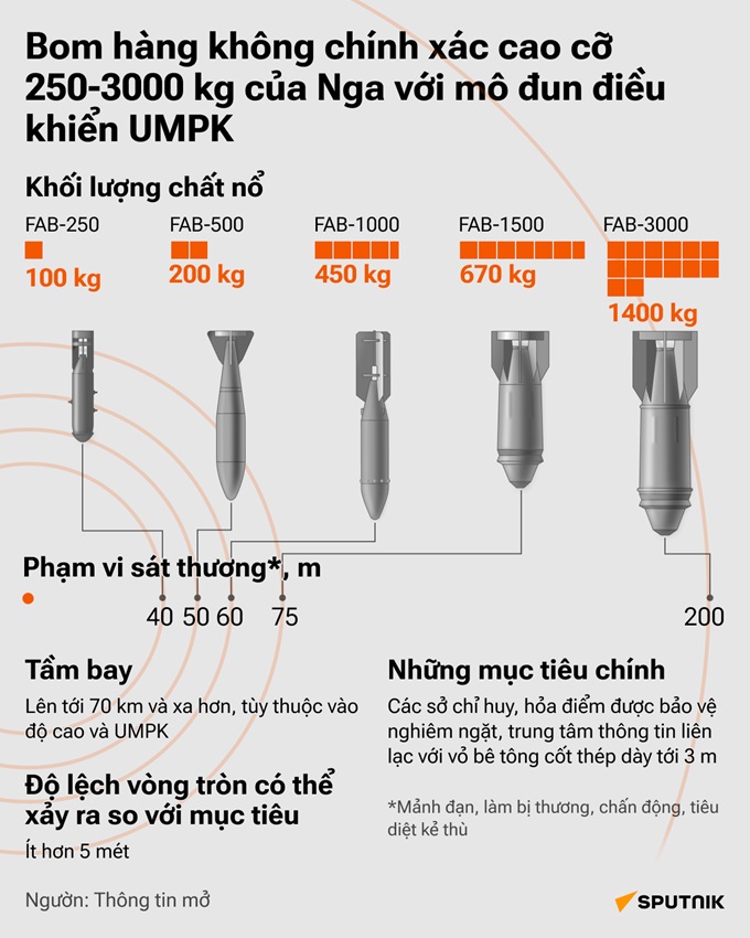 Bom trên không FAB chính xác cao với mô đun hiệu chỉnh đa năng, được quân đội Nga sử dụng trong chiến dịch quân sự đặc biệt ở Ukraina, hiện nay là một trong những loại vũ khí có sức tàn phá mạnh nhất.