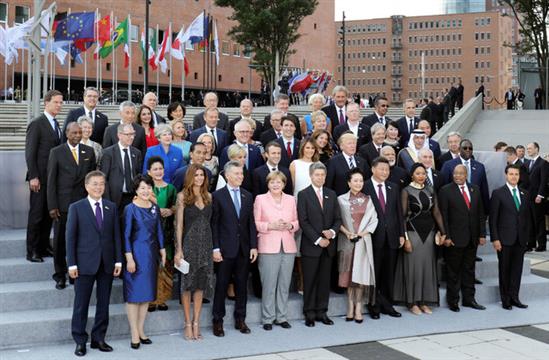 Các lãnh đạo thế giới cùng các phu nhân và phu quân chụp ảnh lưu niệm chung tại hội nghị G20 2017.
