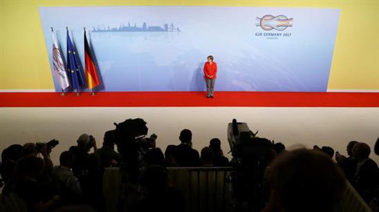 Đại diện nước chủ nhà, Thủ tướng Đức Angela Merkel, đứng trên thảm đỏ chào đón các nhà lãnh đạo thế giới về dự hội nghị thượng đỉnh của 20 nền kinh tế hàng đầu thế giới (G20), diễn ra trong hai ngày 7-8/7 tại thành phố Hamburg.