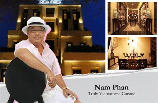 Nhà hàng Nam Phan - chi phí xây dựng 8 triệu đô (Võ Văn Tần, quận 3, TP.HCM) được xây dựng theo phong cách thuần Việt với gỗ, phù điêu trang trí, họa tiết trên tường…