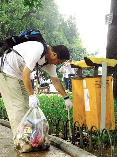 Trước đó, ngay tại một danh thắng nổi tiếng nhất nhì Hà thành là Hồ Gươm, người dân thủ đô sáng chủ nhật nào cũng bắt gặp một người đàn ông lớn tuổi người Nhật tay cầm túi nilon, tay kia cầm một kẹp sắt dài đi thu gom rác quanh hồ do những người thăm quan vứt lại.