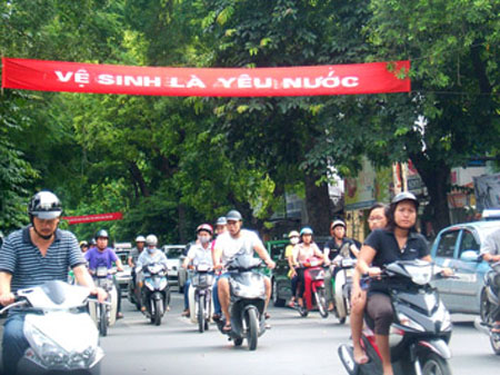 Tấm khẩu hiệu "Vệ sinh là yêu nước" trên đường Tràng Thi, Hà Nội