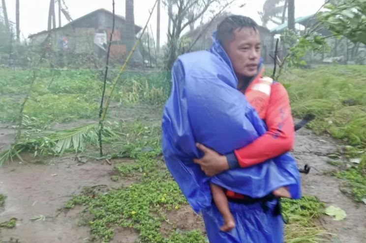 Lực lượng cứu hộ di tản em nhỏ đến nơi an toàn khi siêu bão Ragasa đổ bộ vào
