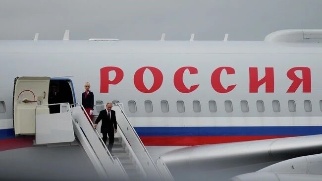 Tổng thống Nga Vladimia bước xuống từ máy bay. Ảnh: AP/Julia Demaree Nikhinson