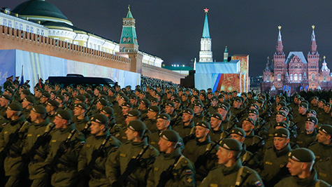 Các quân nhân Nga tham gia buổi tập dượt hôm 5/5 (ảnh: Reuters)