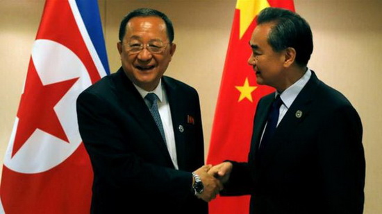 Ngoại trưởng Triều Tiên Ri Yong Ho (trái) cùng đồng cấp Trung Quốc, ông Vương Nghị (Ảnh: Reuters)