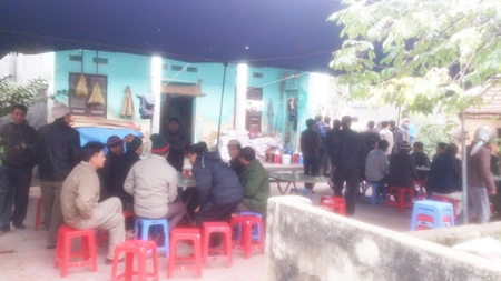 Trong khi đó, không khí ảm đạm, tang thương đang bao trùm gia đình nạn nhân Hoàng Văn Hòa. Bên ngoài, những người thân đang lo hậu sự cho anh Hòa. Phía trong, vợ con cùng họ hàng khóc vật vã bên người đã khuất.