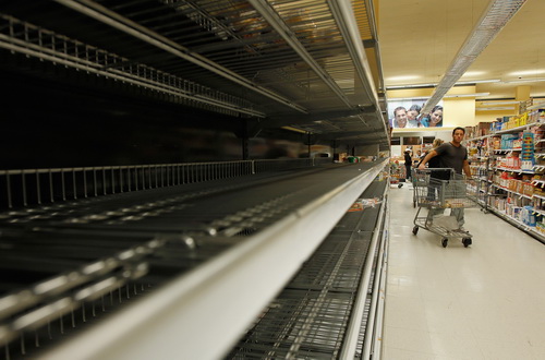 Bánh mì tại một siêu thị tại thành phố New York được mua sạch do người dân đổ xô mua lương thực thực phẩm cho những ngày bão đến