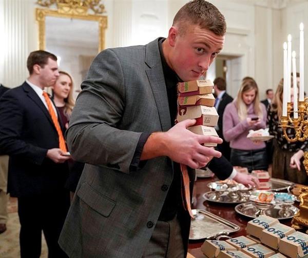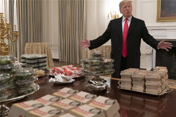 Tối 15-1, Tổng thống Mỹ Donald Trump đã phải đãi khách là các thành viên đội bóng bầu dục trường đại học Clemson, chiến thắng giải vô địch bóng bầu dục đại học Mỹ đến thăm Nhà Trắng bằng một bữa tiệc thức ăn nhanh. Lý do là bộ phận bếp nghỉ làm do tình trạng chính phủ bị đóng cửa vẫn chưa được giải quyết, Washington Post đưa tin.