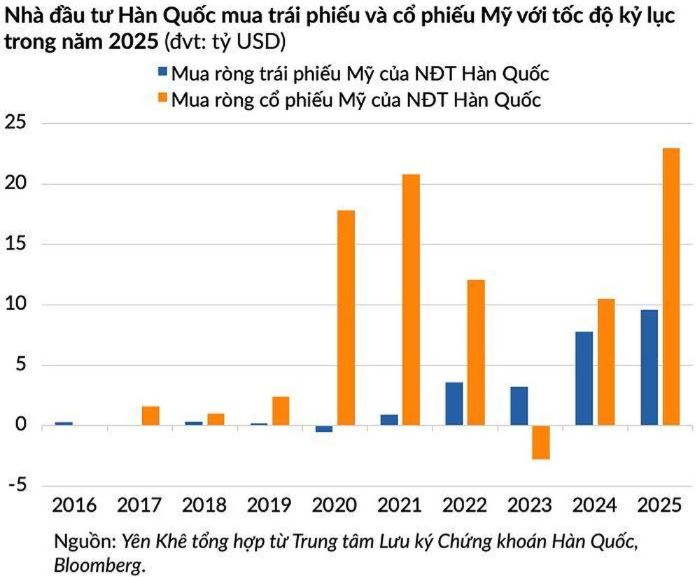 Theo dữ liệu của Trung tâm Lưu ký Chứng khoán Hàn Quốc, lượng cổ phiếu và trái phiếu Mỹ mà các nhà đầu tư nhỏ lẻ nước này nắm giữ đã đạt 184 tỷ USD trong tháng 10, mức cao nhất từ trước đến nay.