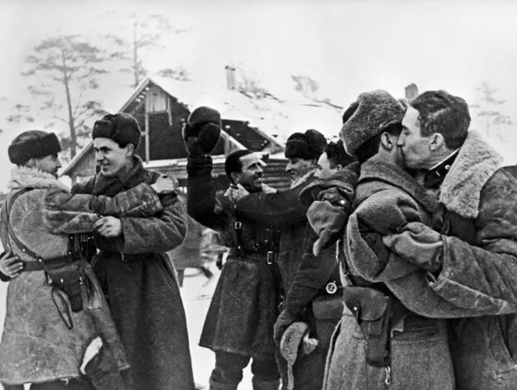 Chiến tranh Vệ quốc Vĩ đại 1941-1945. Vòng vây đã bị phá vỡ! Cuộc gặp lịch sử của các chiến sĩ Phương diện quân Leningrad và Phương diện quân Volkhov ngày 18 tháng 1 năm 1943.